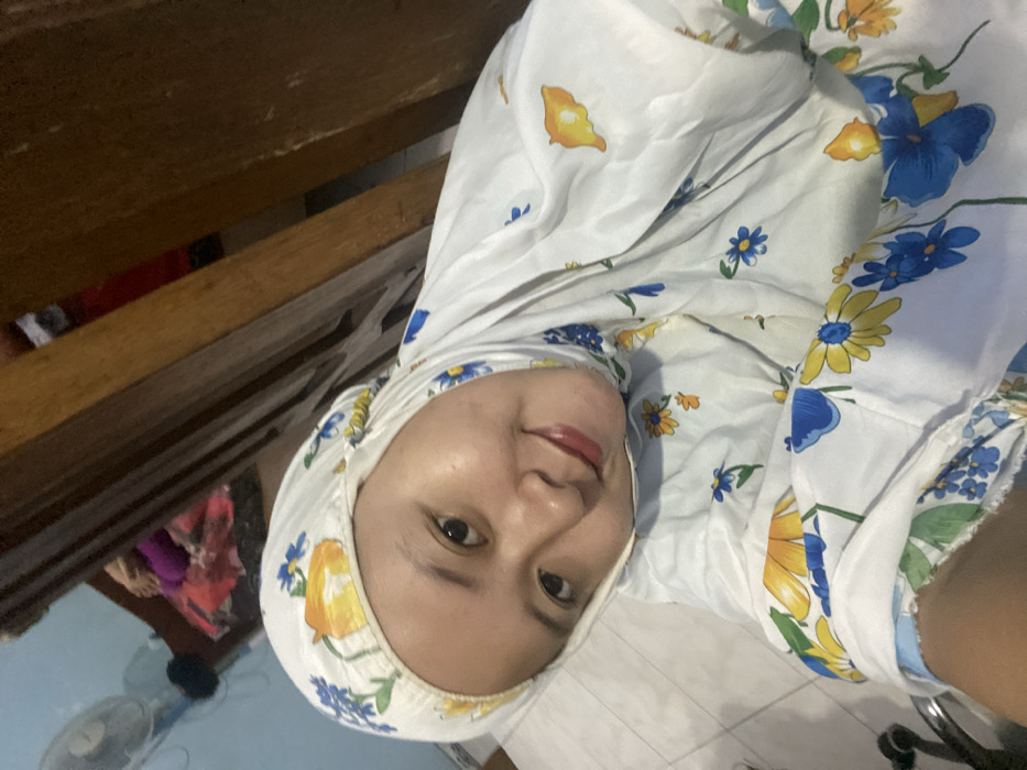 An indoor scene in Gelam, Indonesia, depicts a female individual in the foreground, facing the camera with a slight smile