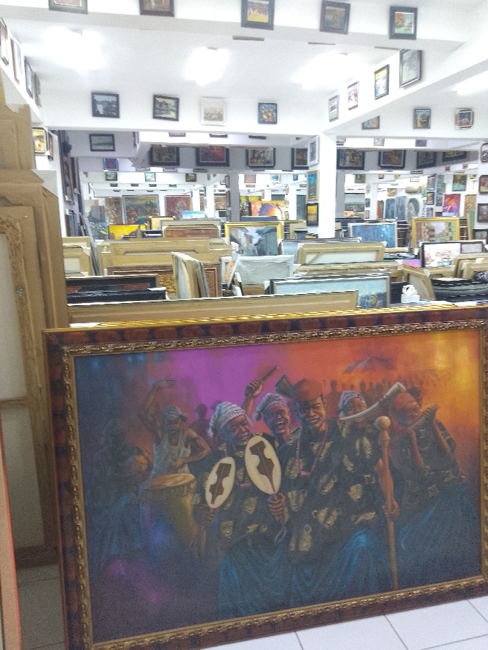 - "An interior view of an art gallery or showroom in Ikate, Nigeria, displays a vast collection of artworks" by FM-aUq7B2, licensed under CC BY 4.0