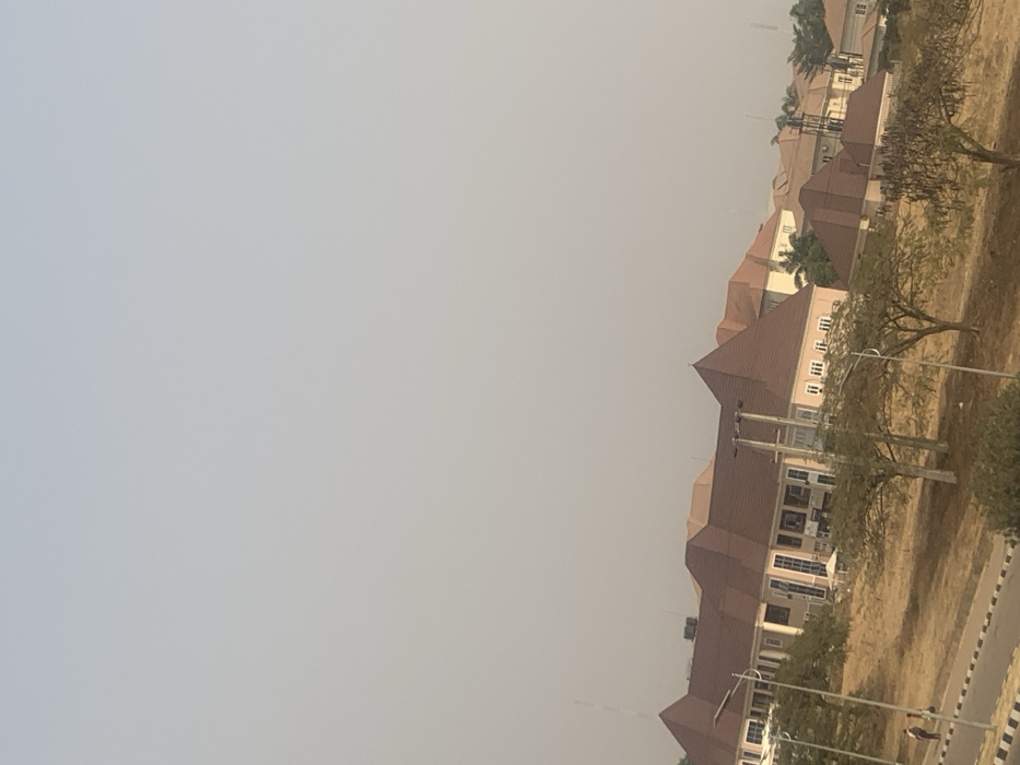 A residential area under a hazy sky