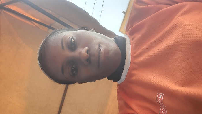 A close-up, low-angle selfie captures an individual identified as female, with dark skin, in Zango, Nigeria