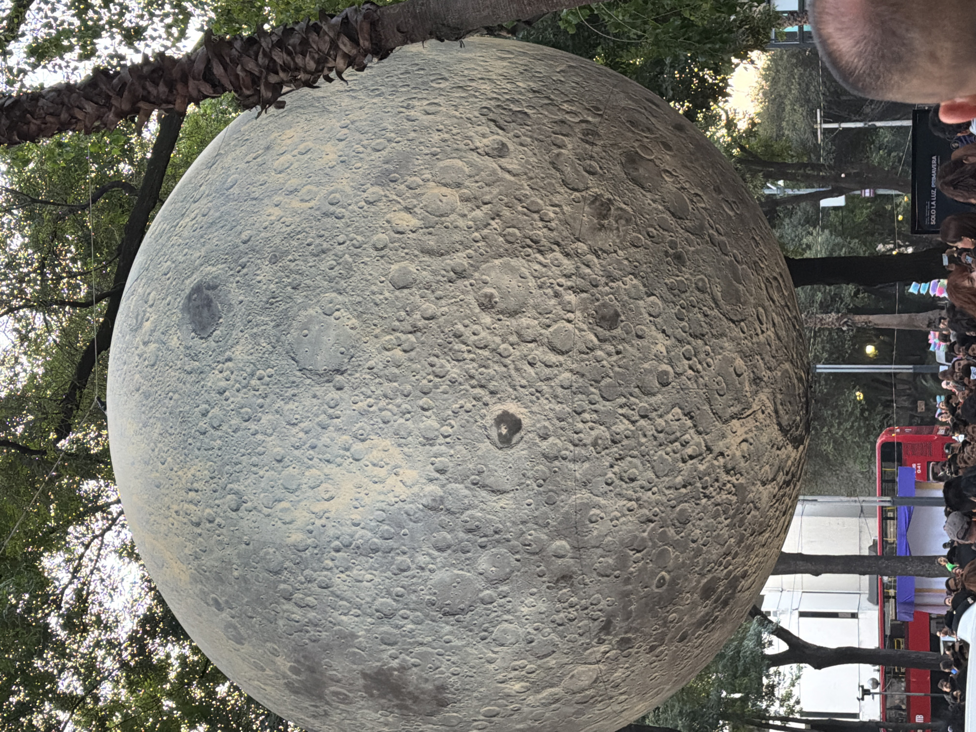- "large, spherical sculpture resembling the moon hanging in what appears to be a public park in Mexico City, Mexico" by FM-1pa2R2, licensed under CC BY 4.0