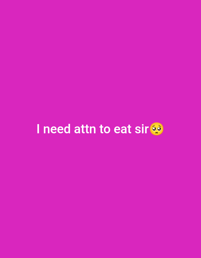 The image displays a solid magenta-colored background. Centrally positioned, white sans-serif text reads "I need attn to eat sir". This text is immediately followed by a yellow pleading face emoji (🥺). No physical subjects, objects, or environmental features are depicted. The content of this digital image does not provide any information to determine a specific location within the city of Bogor, Indonesia, or any other geographical area.