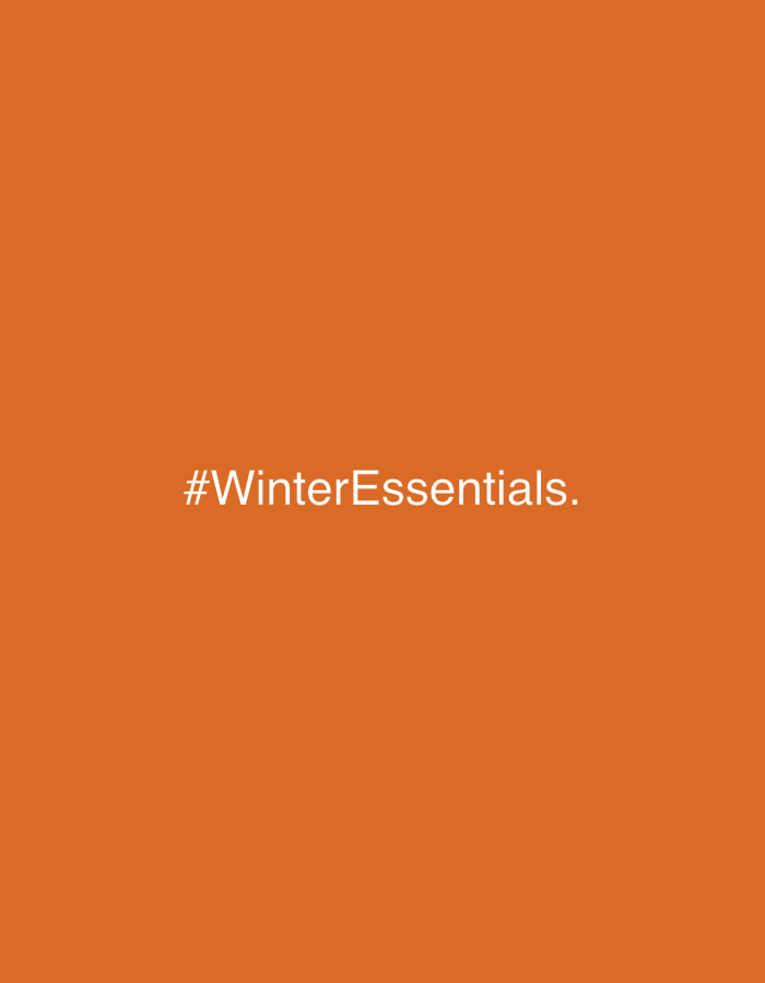 The image features a solid, untextured orange background. White, sans-serif text is centrally positioned on this field. The text reads "#WinterEssentials." and includes a period at the end. There are no individuals, animate subjects, physical objects beyond the text itself, actions, or interactions depicted. The visual content of the image provides no information to determine a specific geographical location, such as within the city of Yuzhong District, China, or any other physical environment.