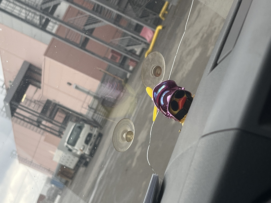 - "The scene depicts an exterior view from inside a vehicle in Верхнетемерницкий, Russia, looking through a windshield with a visible horizontal crack and two circular suction cup mounts" by FM-BhCGm1, licensed under CC BY 4.0