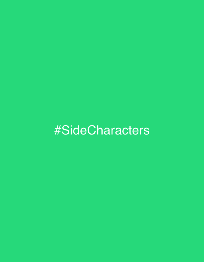 The image displays a solid vibrant green background. Centrally positioned on this background is the white text "#SideCharacters" rendered in a sans-serif typeface. No animate or inanimate objects, individuals, specific actions, or discernible physical environment are depicted within the image itself. The context for this image description is the city of Choeng Thale, Thailand.