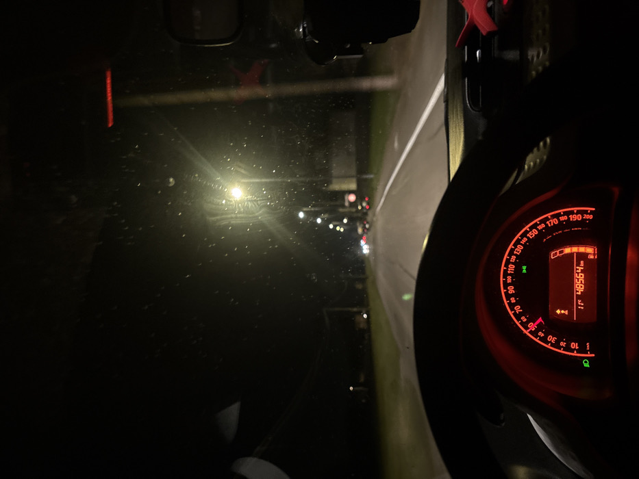 - "A nighttime car interior view features a red-lit dashboard with a speedometer displaying 48564 km" by FM-Ef8QF3, licensed under CC BY 4.0