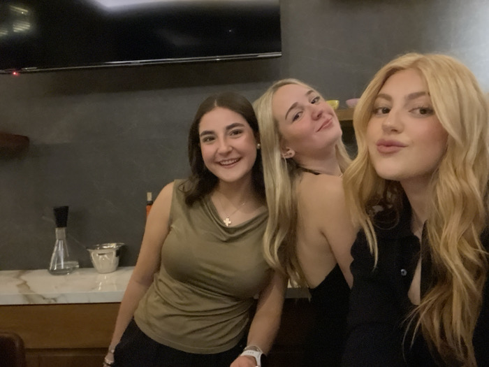 Three young adult females are depicted in a close-up, indoor setting