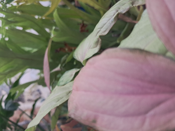 A close-up showcases a cluster of vibrant green and pink foliage