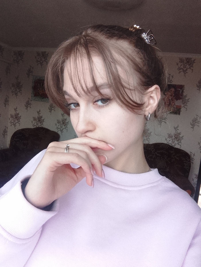 A headshot-style portrait captures a young female indoors in Nova Oleksandrivka, Ukraine