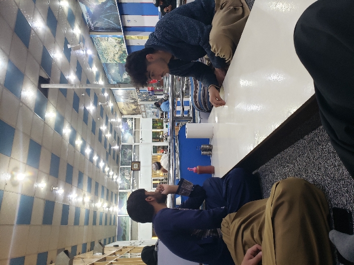 - "People are seated at a long, white table in a brightly lit restaurant with blue and white checkered floors" by FM-NRl2w1, licensed under CC BY 4.0