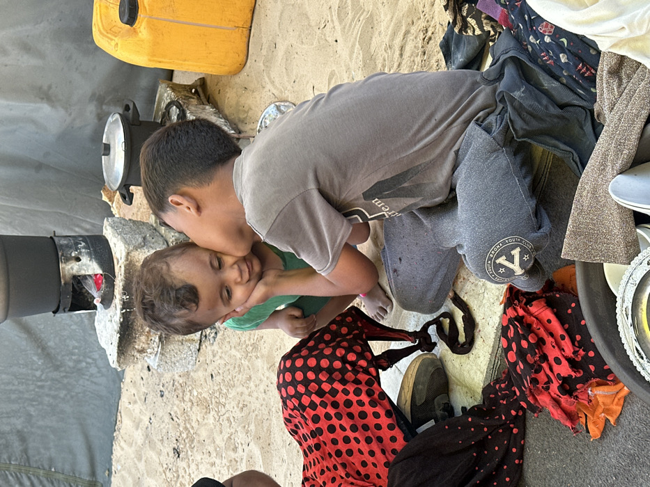 - "The image depicts two children on sandy ground within what appears to be a temporary outdoor living area in Khan Yunis, Palestinian Territory" by FM-zF1RI3, licensed under CC BY 4.0