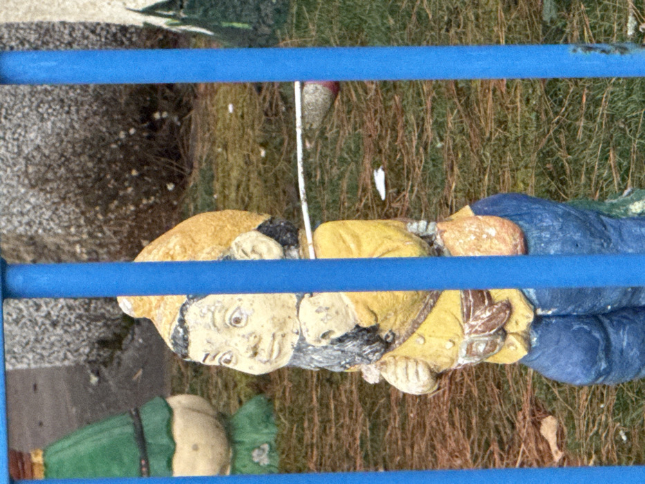 - "The scene depicts a concrete garden gnome statue framed by two vertical blue bars in the foreground" by FM-PDjLC3, licensed under CC BY 4.0