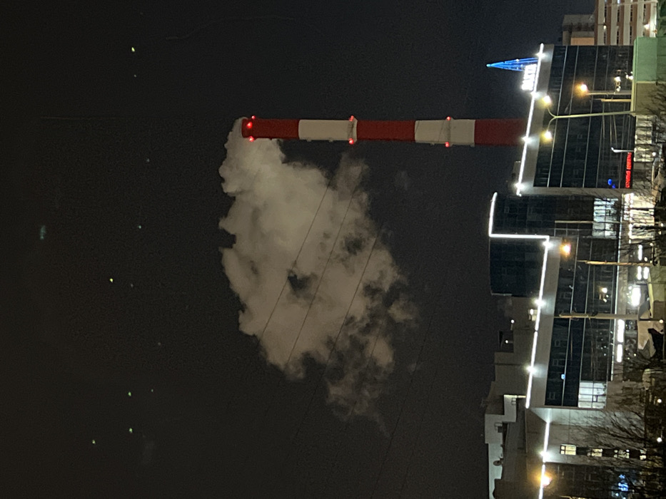 - "A red and white striped smokestack emits white smoke against a dark night sky" by FM-4Mf512, licensed under CC BY 4.0