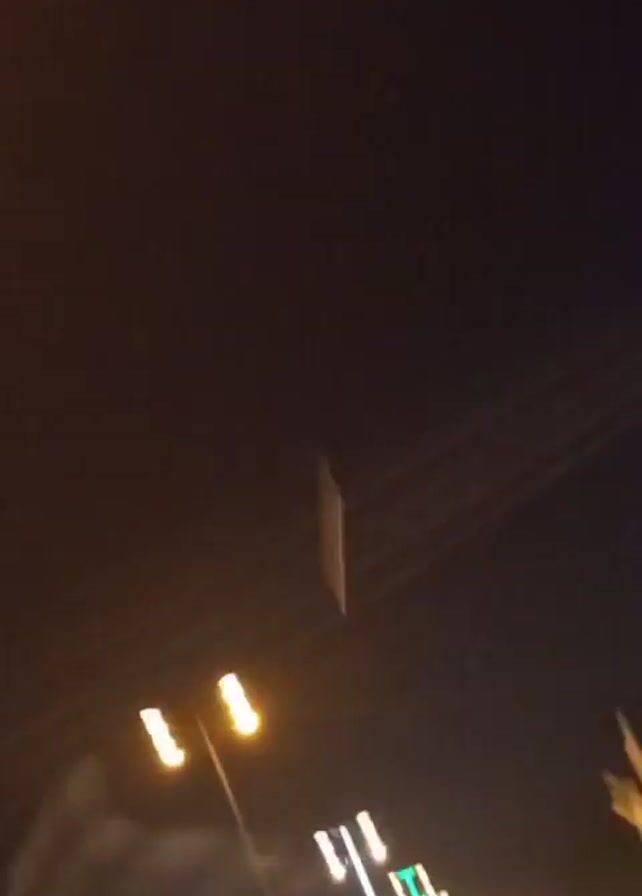 The video appears to be taken from a moving vehicle, possibly a car or motorcycle, at night