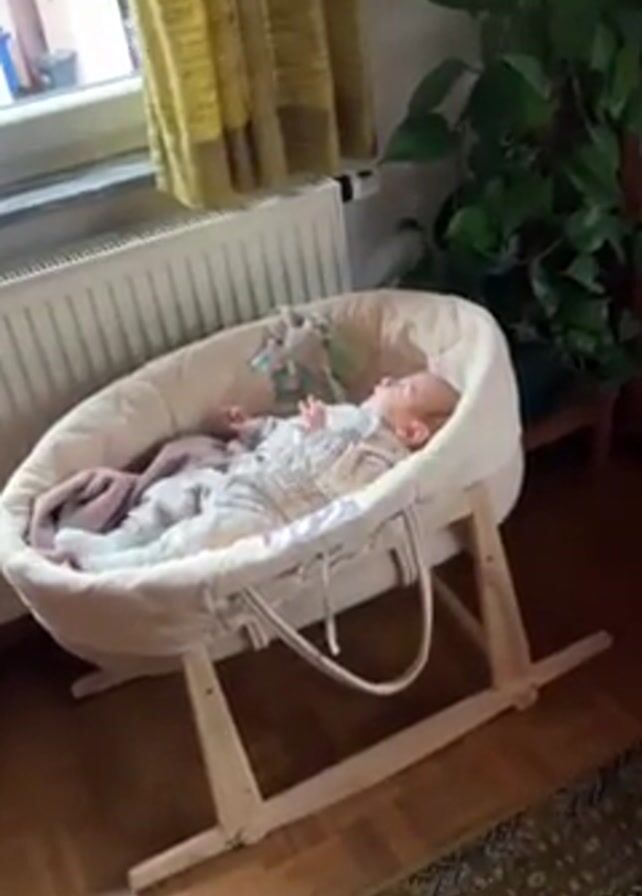 - "A baby lies awake in a fabric bassinet on a wooden frame" by FM-YPNSq2, licensed under CC BY 4.0