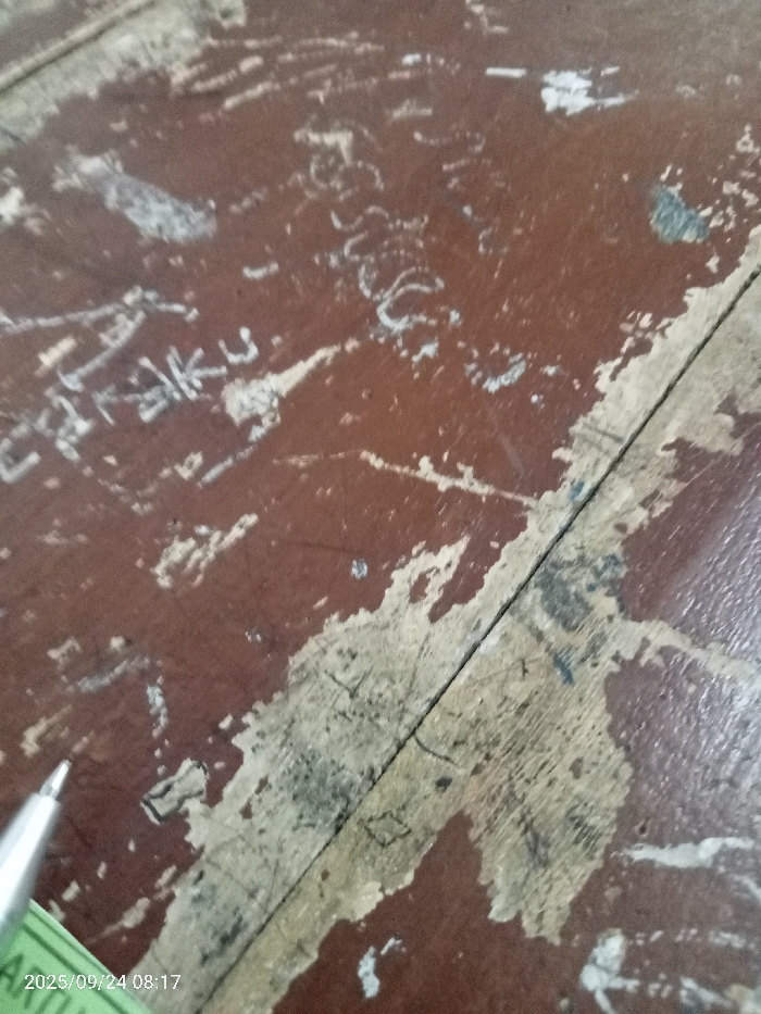 - "A close-up, oblique view depicts a heavily worn and defaced wooden surface, likely a desk or tabletop, located in Quebrada del Medio, Venezuela" by FM-nTzpb2, licensed under CC BY 4.0