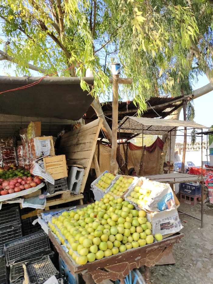 - "The image displays an outdoor fruit market scene situated in Chak Kamdar, Pakistan, under a clear blue sky" by FM-uPtwu2, licensed under CC BY 4.0