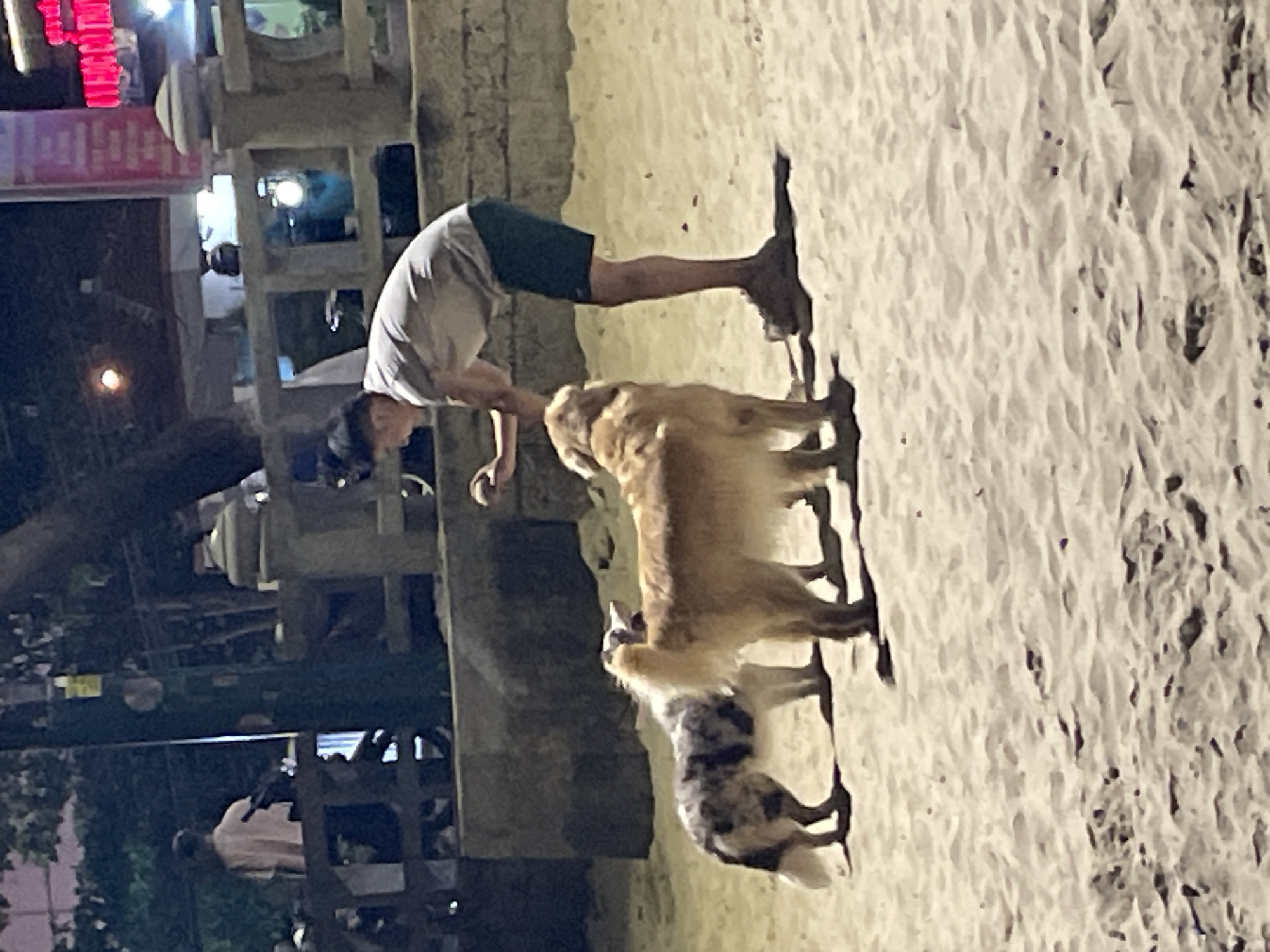 - "A man is interacting with two dogs on a beach at night in Bắc Nha Trang, Vietnam" by FM-cs6Ol1, licensed under CC BY 4.0
