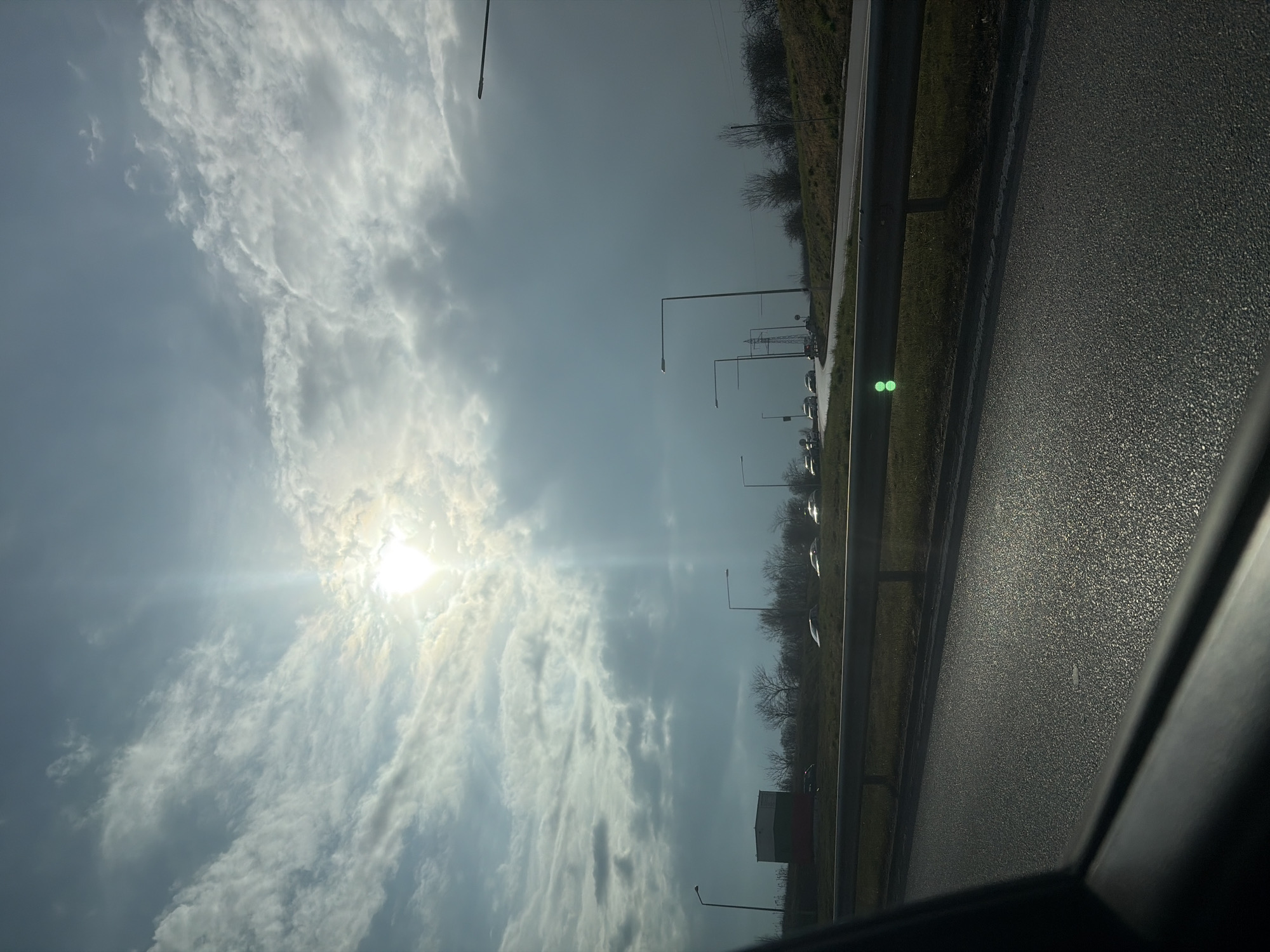 The photograph appears to be taken from inside a vehicle, likely a car, traveling along a highway or major road