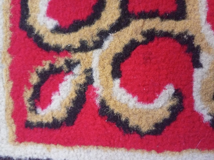 - "A close-up view showcases a textured carpet with a bold, intricate pattern" by FM-JIlGY2, licensed under CC BY 4.0