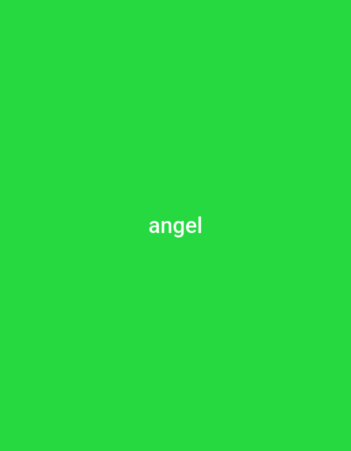 A vibrant green background fills the frame. Centered horizontally and vertically, the word "angel" appears in white, sans-serif font. The text is clear and legible against the bright green backdrop. The overall composition is simple, drawing focus to the word itself and its contrast with the solid background.