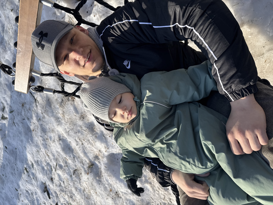 - "A close-up outdoor photograph, taken in the city of Perm, Russia, features two individuals seated together in what appears to be a swing, with snow-covered ground visible in the background" by FM-qGpE52, licensed under CC BY 4.0
