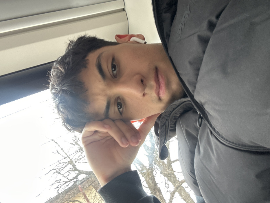 The image presents a close-up selfie of a young male situated indoors, adjacent to a window