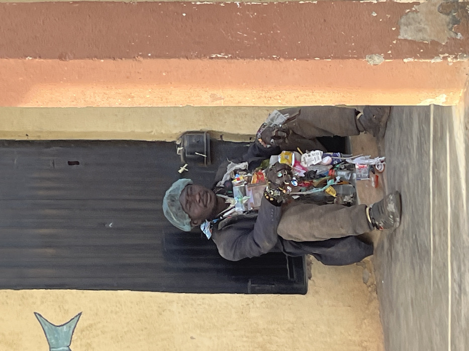 - "An adult sits on the ground against a wall, adorned with an eclectic array of objects strapped to their body and hands" by FM-PcNB33, licensed under CC BY 4.0
