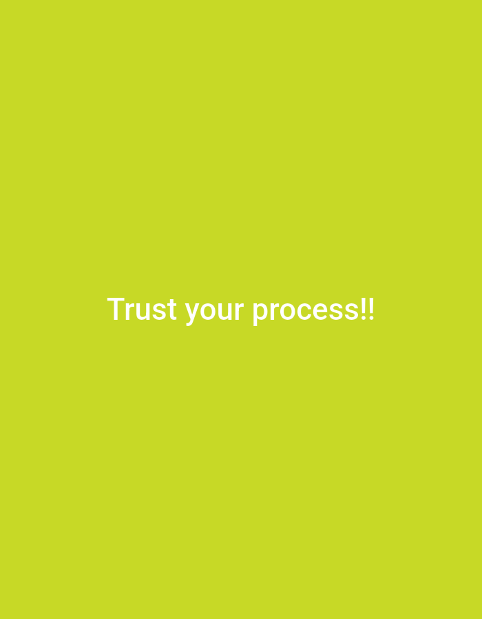 The image displays white text, "Trust your process!!", centered against a solid lime green background