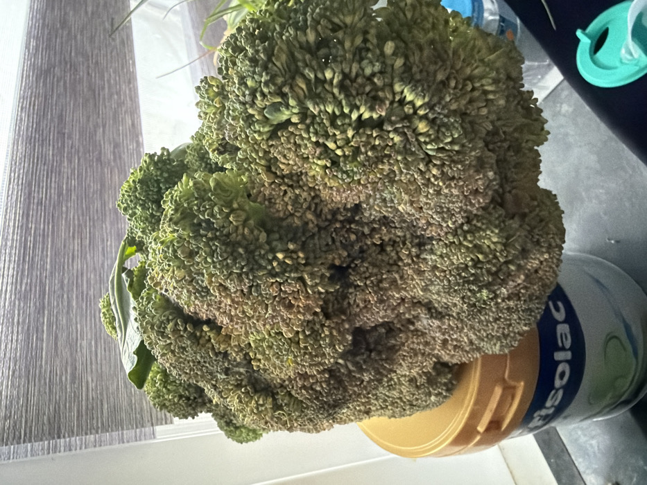 - "A large head of broccoli, displaying green florets interspersed with extensive areas of yellow and light brown discoloration, is centrally positioned" by FM-ZdHD02, licensed under CC BY 4.0