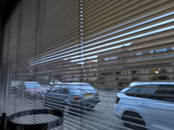 - "The scene depicts an exterior street view observed through horizontal window blinds from an interior vantage point" by FM-quo0I2, licensed under CC BY 4.0