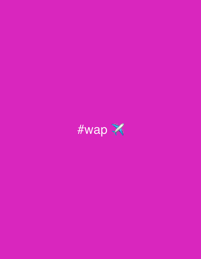 The image displays a solid magenta background. Centered horizontally and vertically are white alphanumeric characters forming the hashtag '#wap', immediately followed by a blue and white airplane emoji oriented to fly towards the right. No physical environment, individuals, objects, actions, or interactions are depicted within the image that would allow for the determination of a specific geographical location, including the city of Galabovo, Bulgaria.