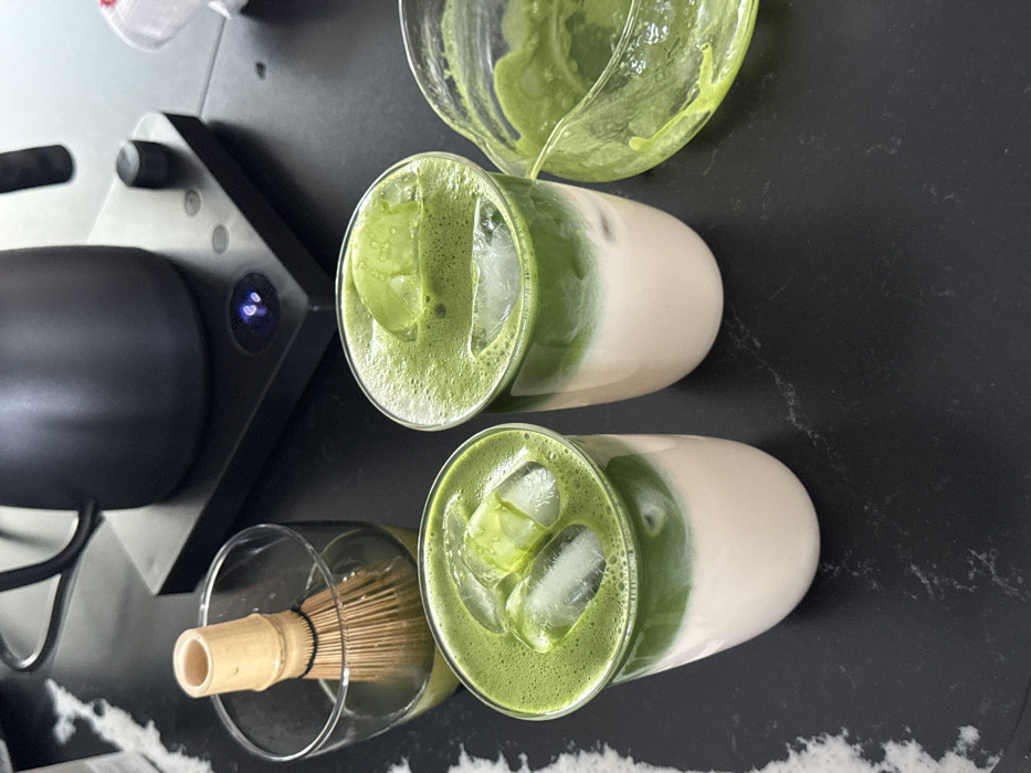 - "The scene depicts a countertop in Zapopan, Mexico, displaying components of iced matcha latte preparation and two finished drinks" by FM-AIn2W2, licensed under CC BY 4.0