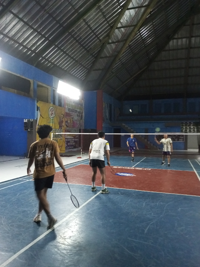 - "Four individuals are engaged in a badminton game inside a large indoor court" by FM-RpQWt1, licensed under CC BY 4.0