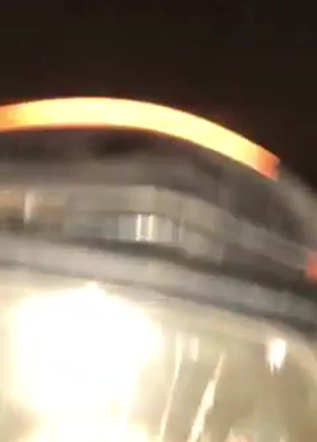 person riding a motorcycle at night. The first shot is from a distance, showing the motorcycle moving away from the viewer on a street with streetlights. The motorcycle appears dark. Then the video switches to a view from the motorcycle itself, focusing on the speedometer. The speedometer reads close to 0 km/h, which might indicate that the motorcycle is idling or moving very slowly. The lighting is low, making details difficult to discern. The street seems empty except for the motorcycle.