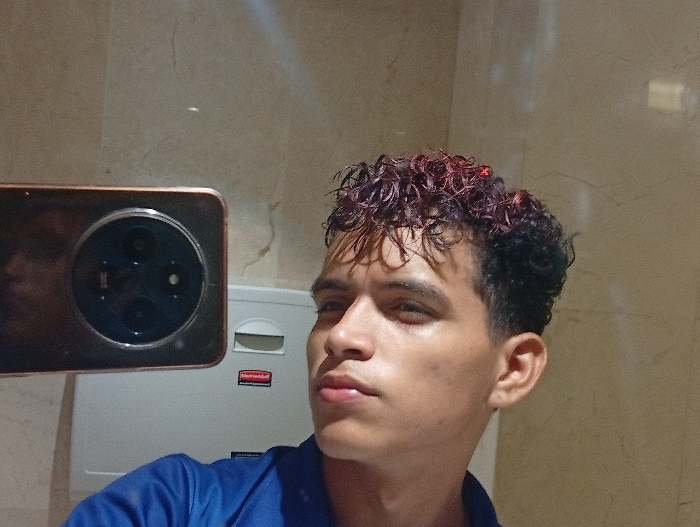 - "A person with curly hair dyed red at the tips is taking a selfie in a bathroom" by FM-xUvng2, licensed under CC BY 4.0