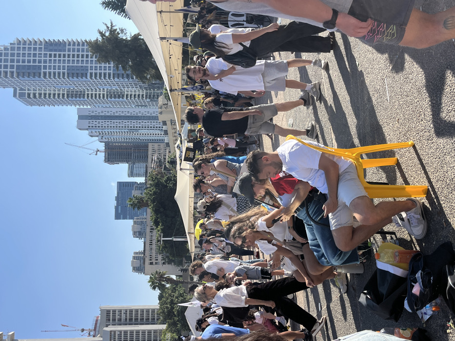 - "The image depicts a large outdoor gathering or demonstration in Tel Aviv, Israel, under a clear blue sky, likely at Rabin Square given the urban backdrop and event scale" by FM-CRvhO2, licensed under CC BY 4.0