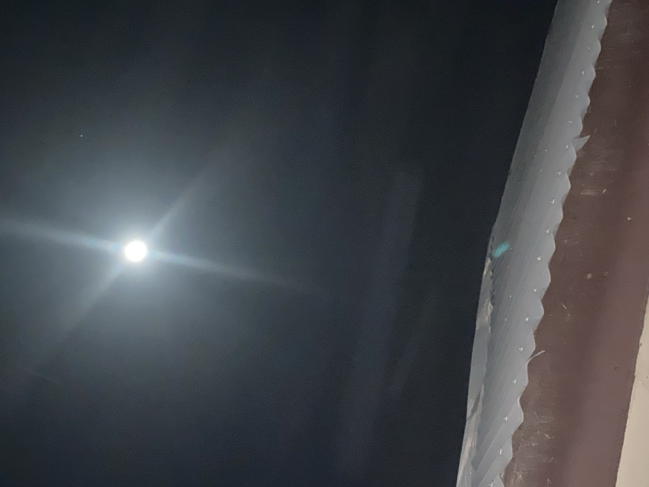 - "This nighttime image, captured in Dabawa, Nigeria, presents an upward-facing view of a clear sky illuminated by a prominent moon and the edge of a building's roof" by FM-KtfGx1, licensed under CC BY 4.0
