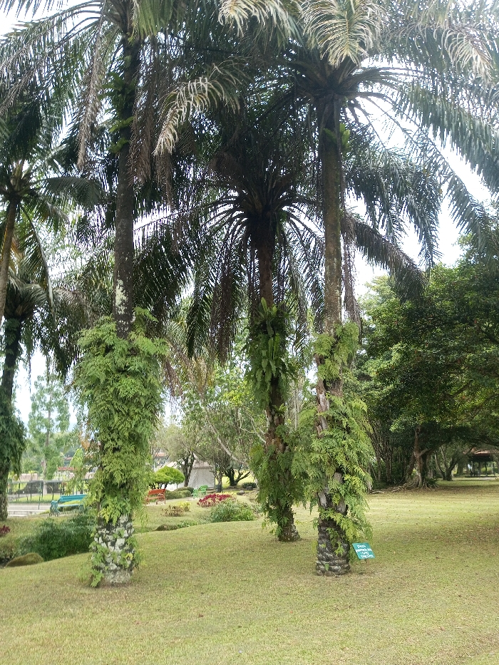 - "A grassy landscape hosts several palm trees, their trunks adorned with lush, green ferns clinging to the base" by FM-RKUpy2, licensed under CC BY 4.0