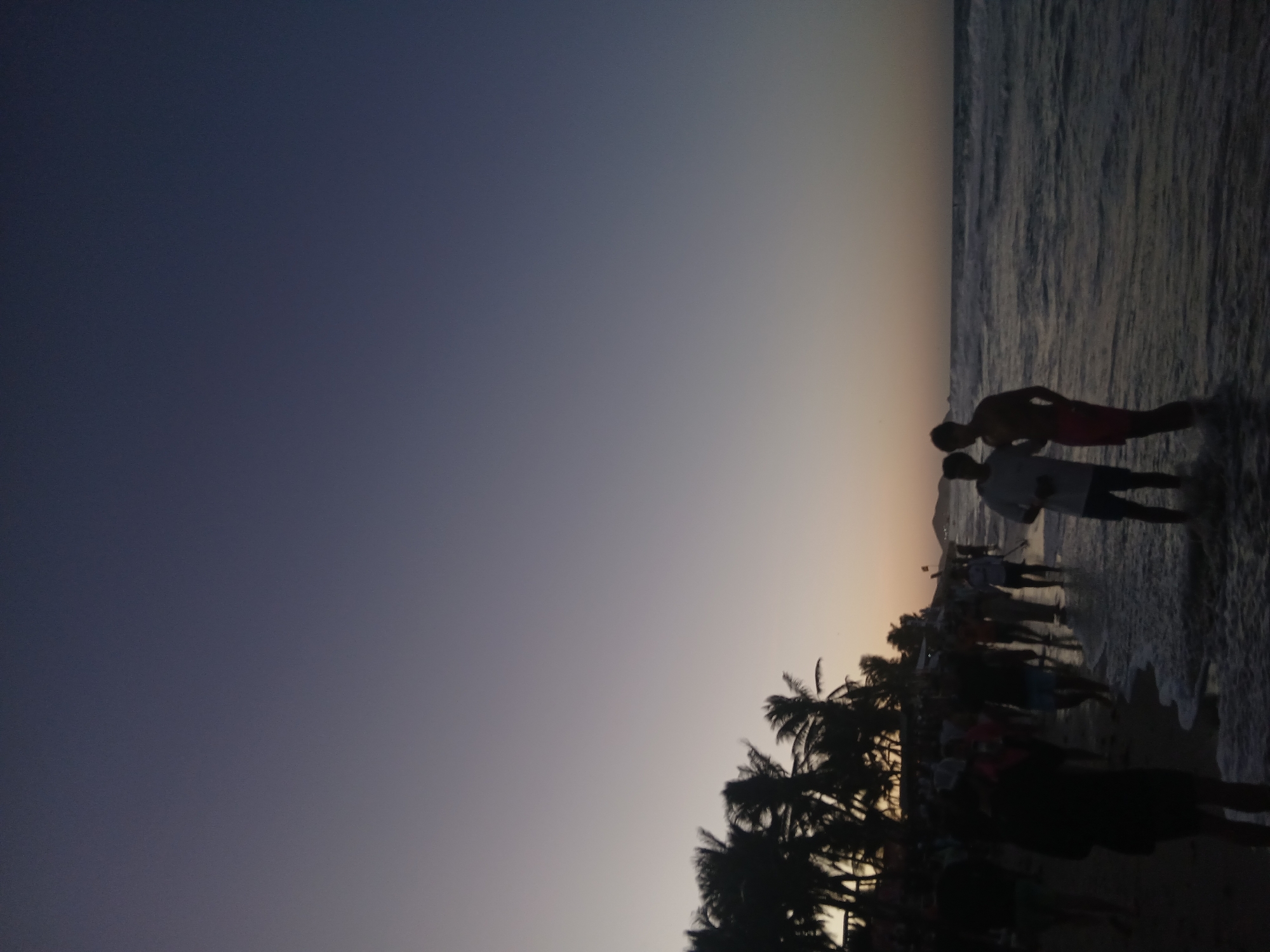 The image captures a scene on the beach in Playa Parguito, Venezuela, at twilight