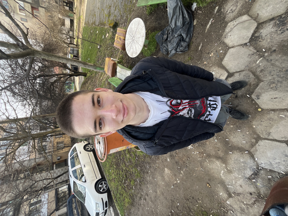 The image captures a young male standing in a residential courtyard in Cherven Bryag, Bulgaria