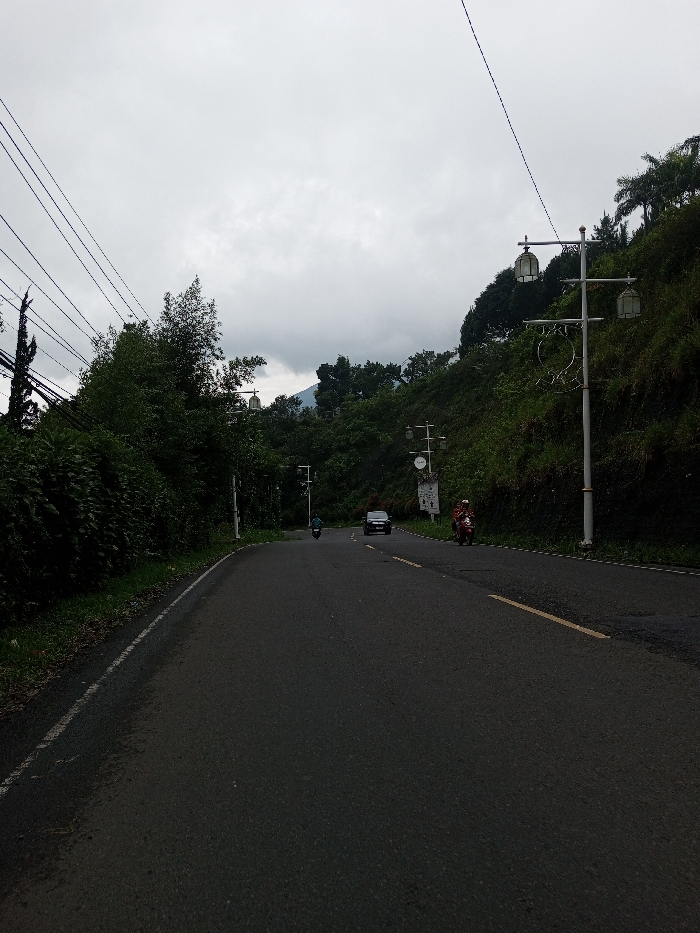 This image displays an asphalt road in Siruppiddy, Sri Lanka, under an overcast sky