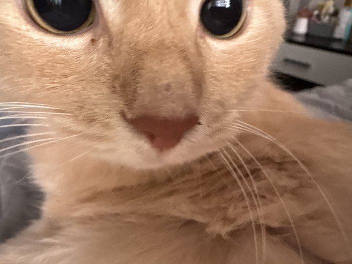 - "A close-up, high-angle image captures the face of an orange tabby domestic cat" by FM-K6p2y1, licensed under CC BY 4.0
