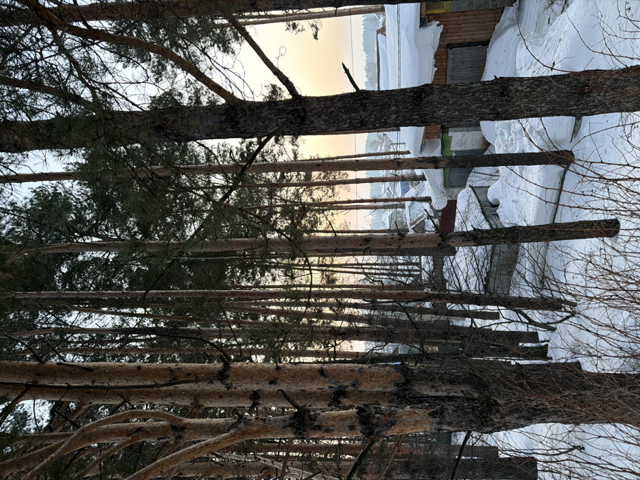 This image presents a winter landscape at the edge of a wooded area in Chaikovsky, Russia