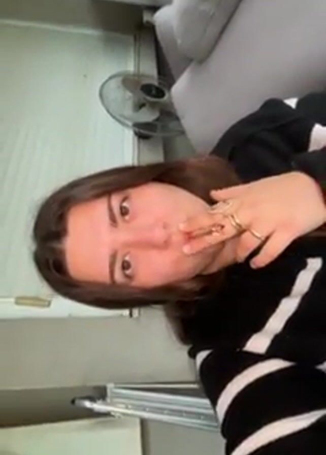 Here's a detailed description of the video: The video appears to be a selfie-style recording from a woman indoors
