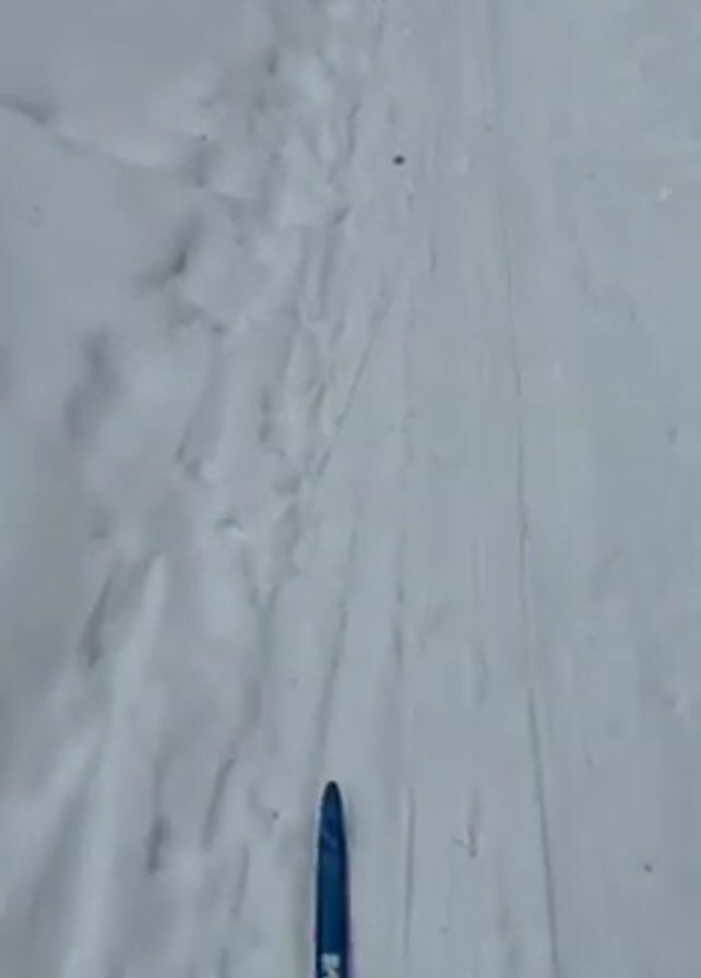 first-person perspective of someone cross-country skiing on a narrow, snow-covered path
