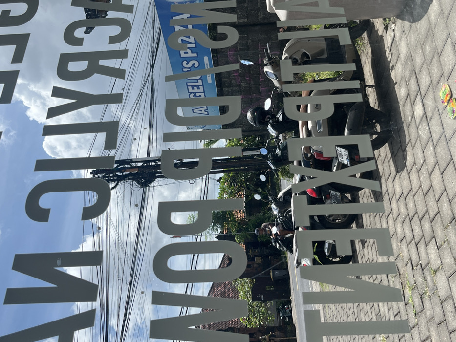 - "This image captures an outdoor street scene in Uluwatu, Indonesia, viewed through a window adorned with white vinyl lettering" by FM-uQf7h1, licensed under CC BY 4.0