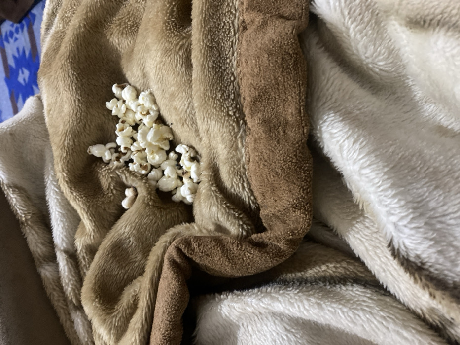 - "This image depicts a quantity of popped popcorn kernels resting on a textured, plush blanket in an interior setting within الغنادة, Tunisia" by FM-VKGKm1, licensed under CC BY 4.0