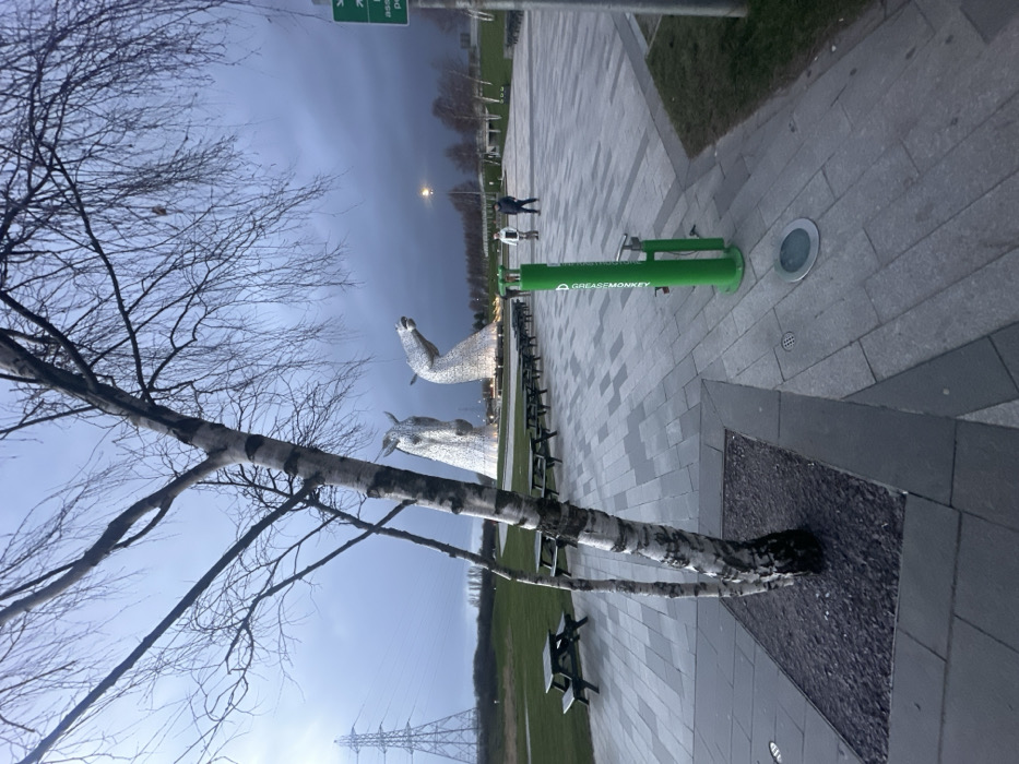- "The image depicts an outdoor scene at The Kelpies in The Helix, Falkirk, United Kingdom, under an overcast sky, suggesting dusk or early evening" by FM-NoS4g1, licensed under CC BY 4.0