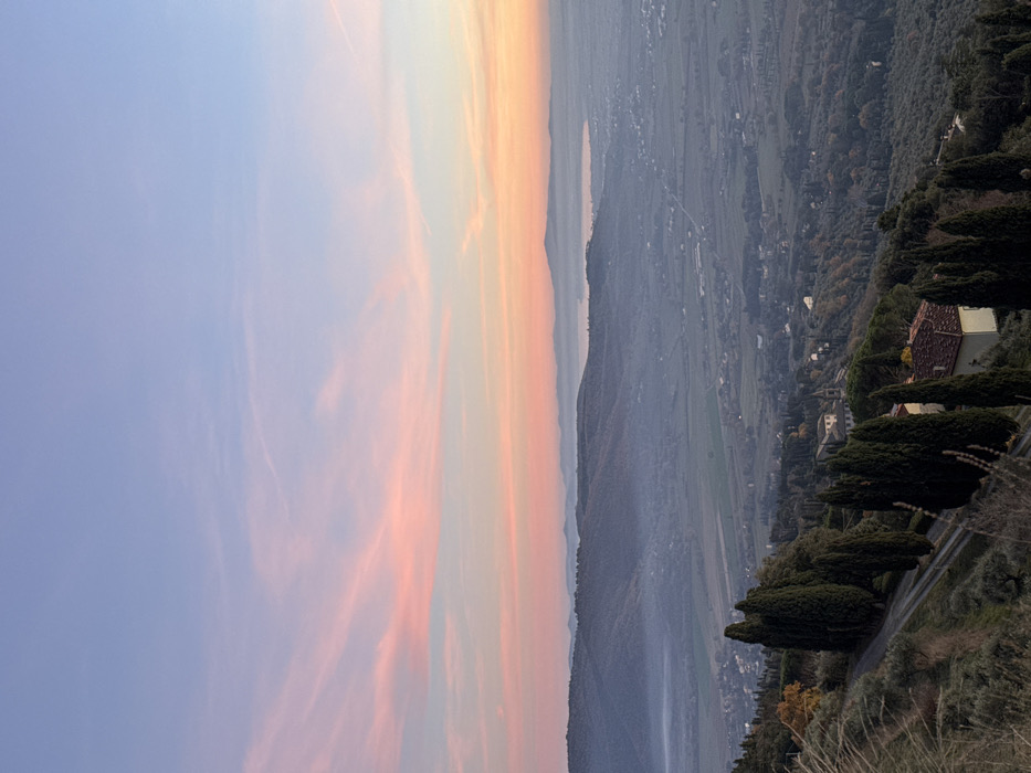 - "The image displays an elevated panoramic view of the Val di Chiana, observed from Cortona, Italy, at either sunrise or sunset" by FM-IdNfF2, licensed under CC BY 4.0